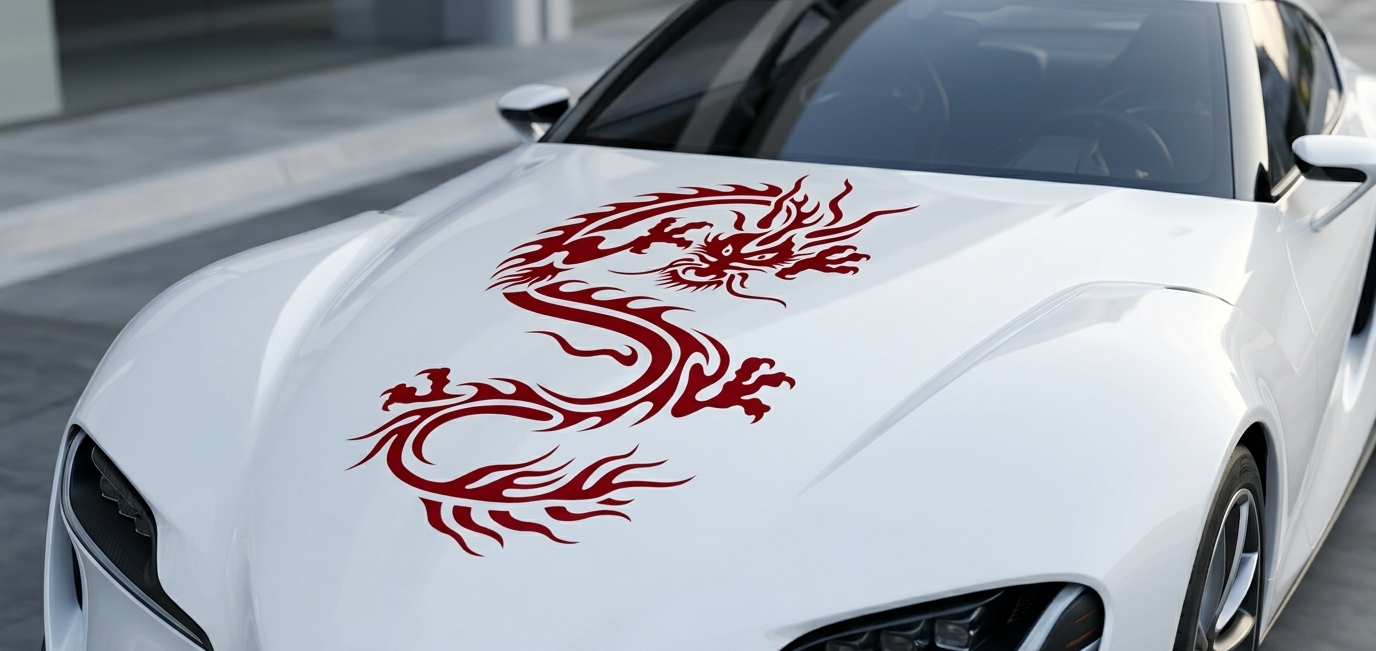 Verleihen Sie Ihrem Fahrzeug mit diesem zornigen Tribal-Drachen eine unvergleichliche Dynamik – hochwertiger, wetterfester Folienschnitt für den perfekten Tuning-Look.